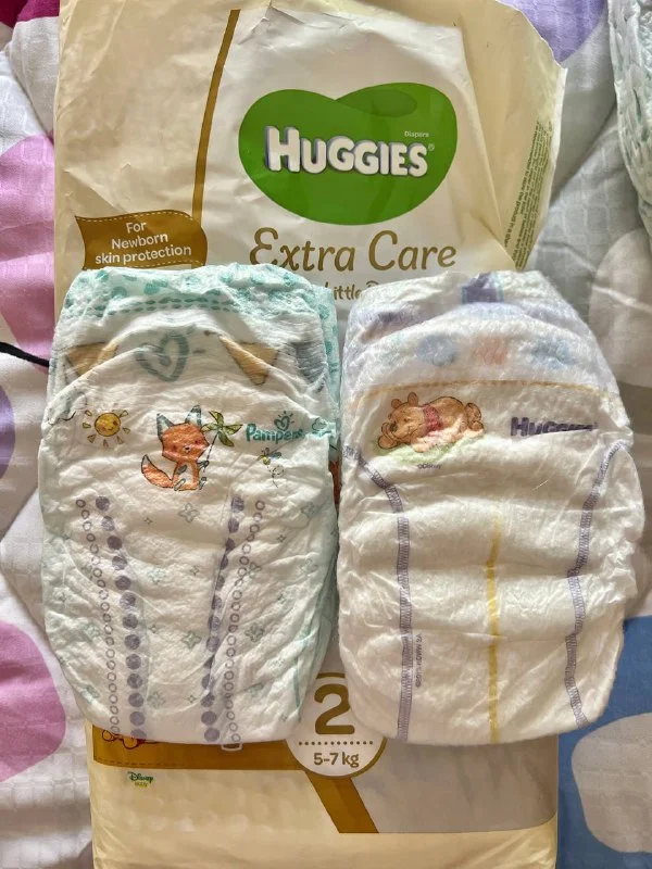 Отдам бесплатно подгузники размер 2 (маломерки, подойдут на 4-6 кг), забирать около Кингс Авеню Молл: 2/3 пачки Huggies extra care + 1/3 пачки Pampers Baby dry air