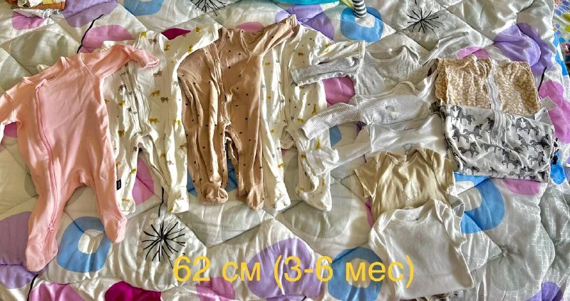 Отдам бесплатно б/у одежду на девочку 0-6 мес. Есть 56 и 62 размеры: бодики с коротким и длинным рукавами; слипы; коконы-пелёнки на молнии; штанишки. Бренды Mjolk, La Redut, Okaidi. Забирать у Кингс Авеню Молл.