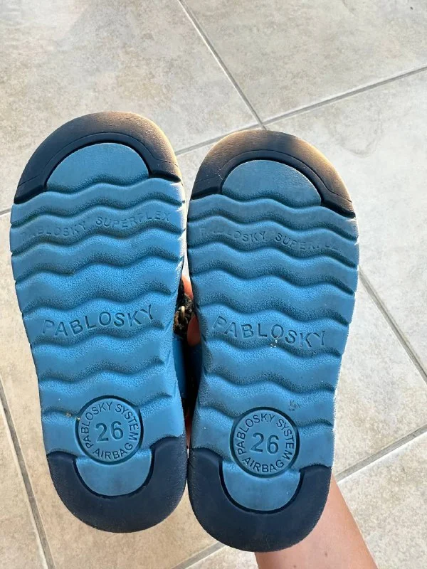 Сандалии Pablosky, 26 размер, голубые, хорошее состояние, стерто несколько стежков на передней нашлепке, которая от стирания носов, но никак не влияет, прослужат еще сезон. Относили пол лета (нога выросла), юниверсал, исоп по утрам и в районе 13:00, бываю в разных районах, могу завезти, если будет по дороге. Иногда бываю в Лимасоле.