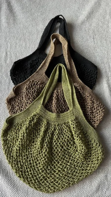 Мама увлекается вязанием крючком и связала красивые сумки-авоськи.