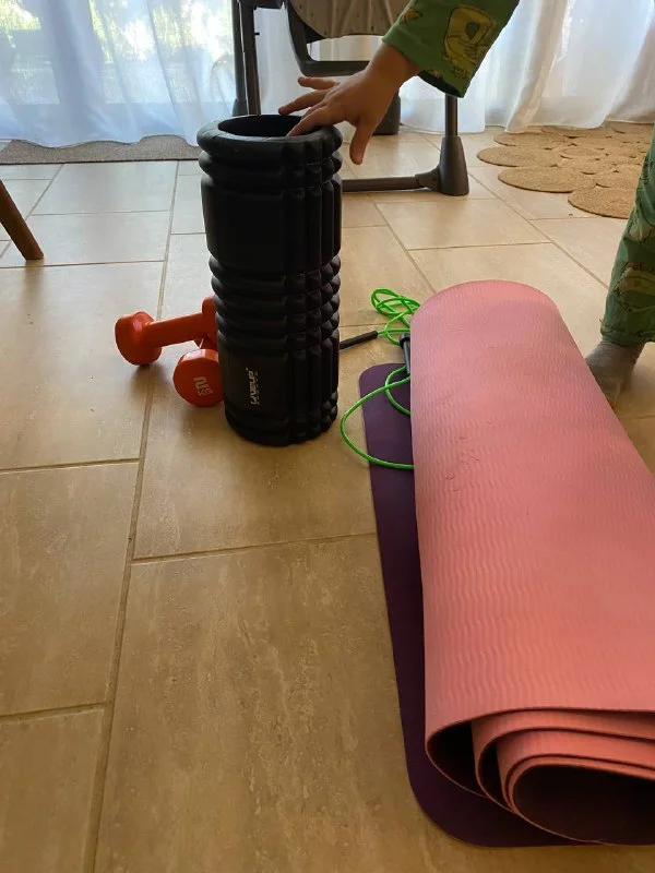 6. Спорт инвентарь: 2 гантели по 2кг, скакалка, коврик для йоги, ролл для фитнеса.