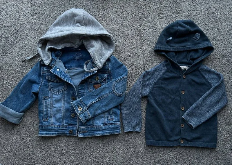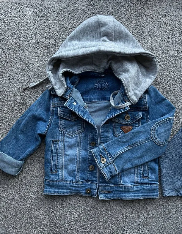 Джинсовая куртка с отстегным капюшоном. Состояние - как новая. Размер 86-98.