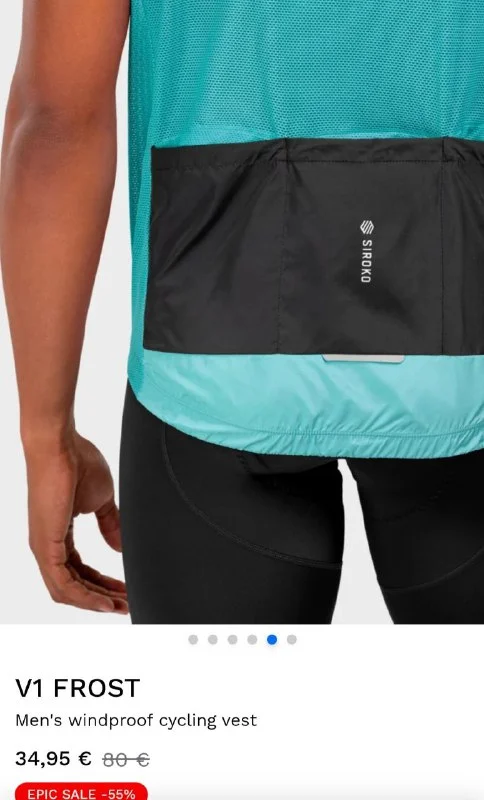 Спортивная жилетка Siroko для велосипеда или бега. Впереди непродуваемая, сзади сетка. Размер мужской S, женский S-M. Новая, не подошёл размер. 34€
