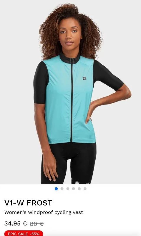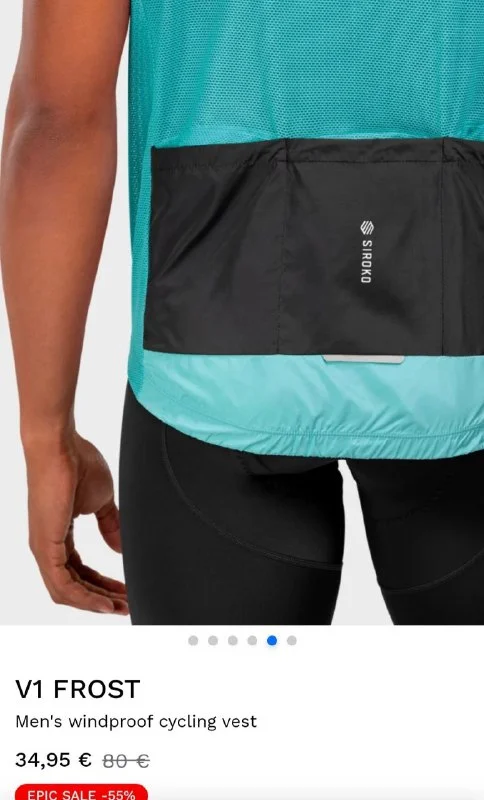 Спортивная жилетка Siroko для вела и бега. Спереди непродуваемая, сзади сетка. Размер мужской S, женский S-M (грудь 46, талия 42,5). Новая в пакете, не подошёл размер. 34€