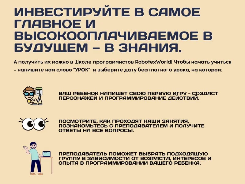 Меня зовут Вика, у меня появилась идея провести онлайн-занятие по программированию для детей от 5 до 15 лет в Roblox, Scratch, Minecraft и Python. Будем учиться с ребятами создавать собственные игры, мультфильмы, а также ознакомимся с понятием алгоритм)Занятие БЕСПЛАТНОЕ. Кому интересно?