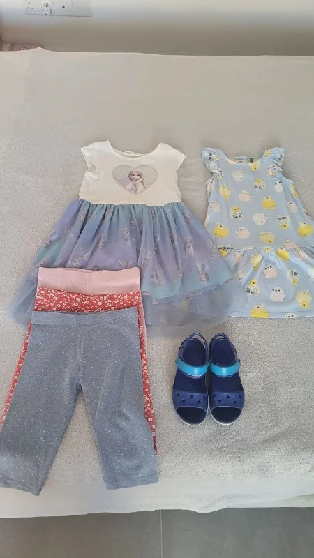 Продам 2 платья на рост 110-116( h&m и crockid)+ леггинсы3/4(next)+ босоножки crocs( c12)