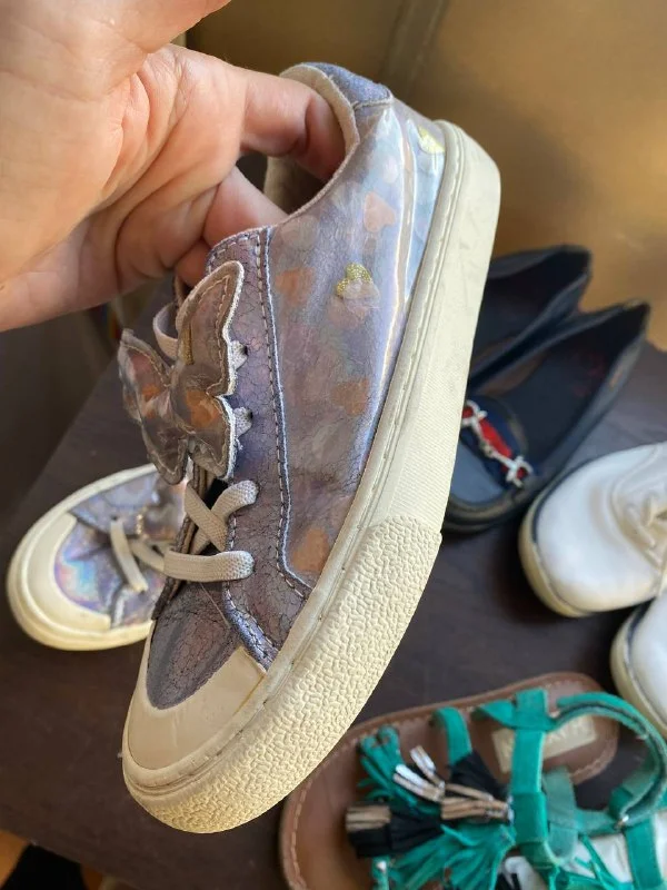4 пары обуви на 31.5-32 размер. Кеды HM 32 с бабочками. Кожаные испанские Paola лоферы в стиле гуччи- 32, новые натуральные замшевые сандали бирюзового цвета- в подарок леггинсы calzedonia в цвет. Продаются Только вместе.