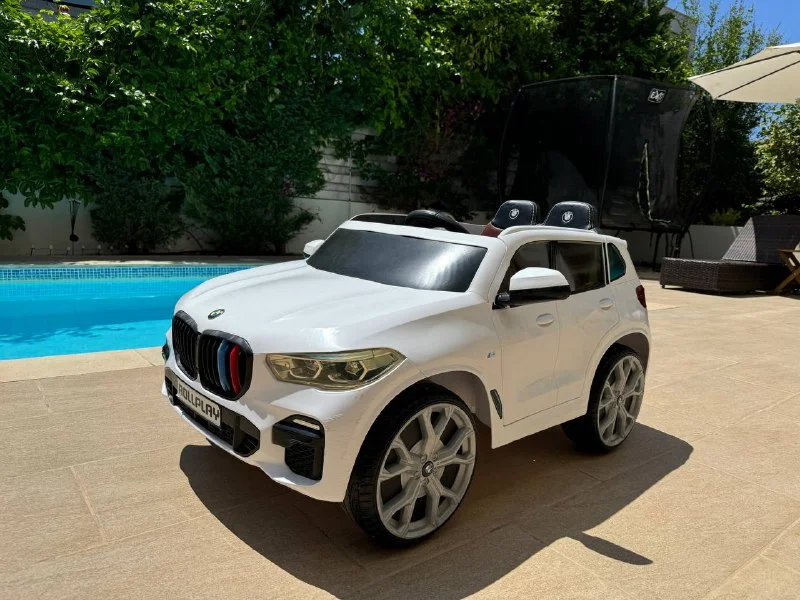 Электромобиль Rollplay двухместный BMW X5M (12V7AH) Новинка 2022 года! Двухместный детский внедорожник BMW X5М с системой заднего привода. Дизайн электромобиля выполнен в стиле BMW X5M с лицензионного согласия Bayerische Motoren Werke AG. Просторный салон, моторы в связке с 12V-аккумулятором обеспечат отличную проходимость. Колеса из EVA-резины, амортизаторы, плавный разгон, 2 комфортных сиденья из эко-кожи с ремнями безопасности.
