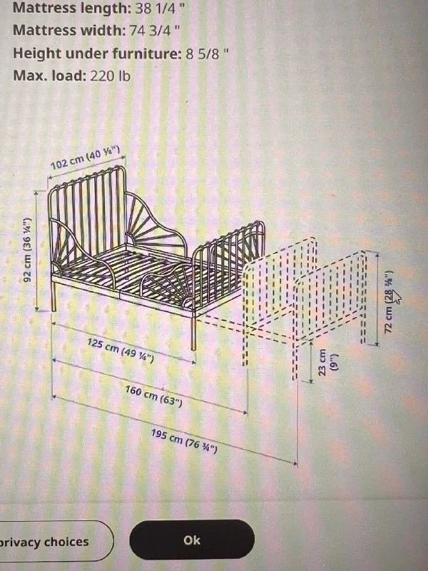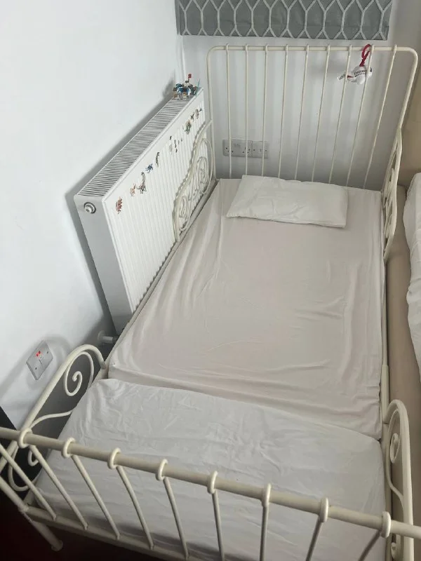 Икеевская кровать-раздвижная. Идет с поролоновым матрасом, двумя простынями. 40 евро. Пейя