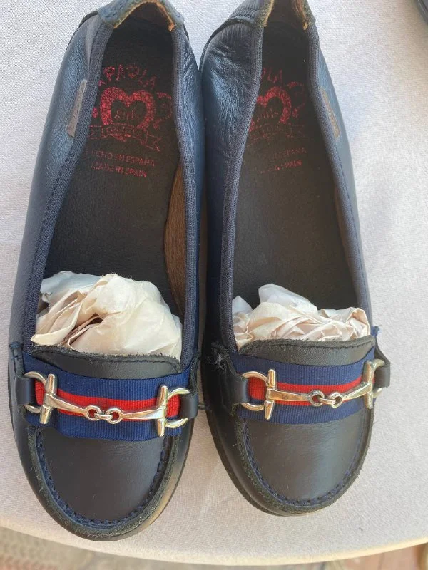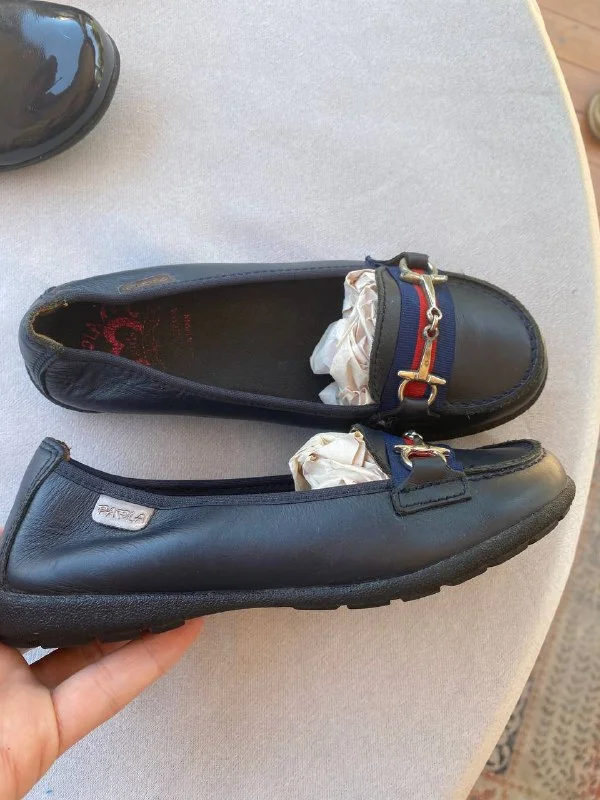 4. Темно синие лоферы Paola, Испания. Кожа. В стиле Гуччи. 32, но на 31.