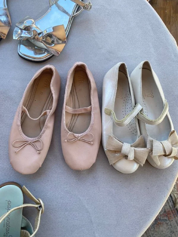 4. Две пары одним лотом. Жемчужно белые TNY с бантами. 32 и розовые балетки Зара.