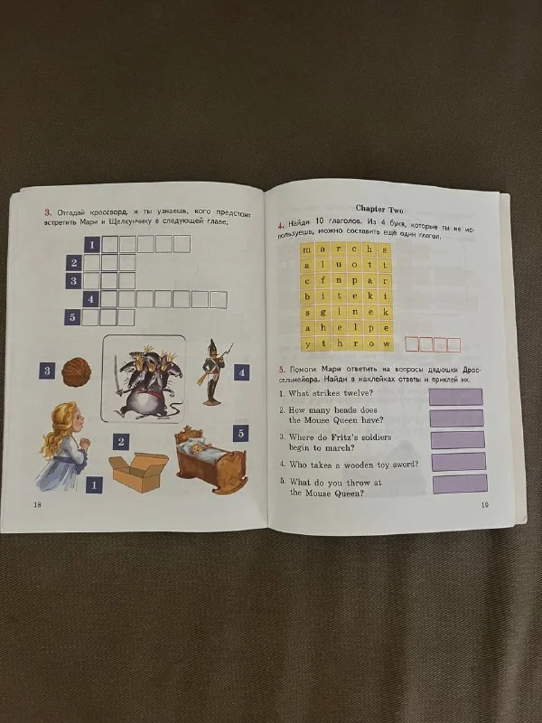 Книга для детей «читаем по-английски» по сказке Щелкунчик с заданиями. Мягкий переплет, не хватает 4 наклеек, все поля для заполнения чистые. Цена 2 💶Пафос, Юневерсал