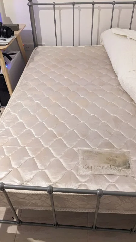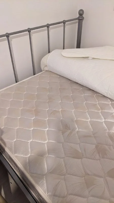 Матрас чистый, кровать с металлическим основанием, не скрипит.