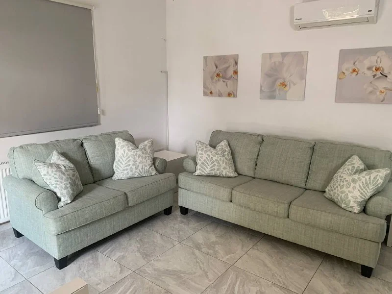 Sofa set: 3 seater + 2 seater , clean, great quality , not ikea. 450 euros for both .Geroskipou. Selling due to relocation.