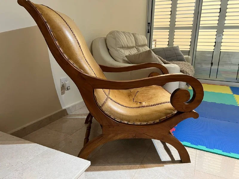Кресло под реставрацию середина прошлого века, Англия, толстая кожа, дерево . 250 евро Корал бей