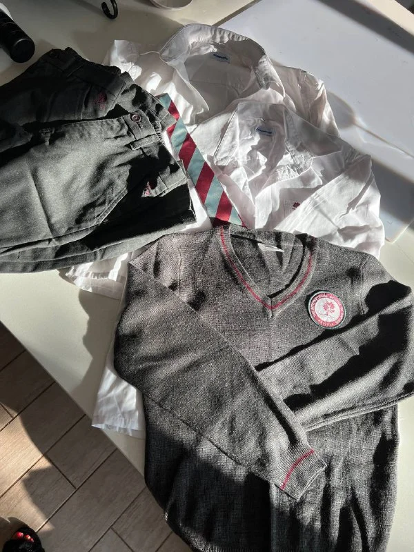 Размер 12 комплект: 3 пары брюк+3 рубашки+джемпер €30