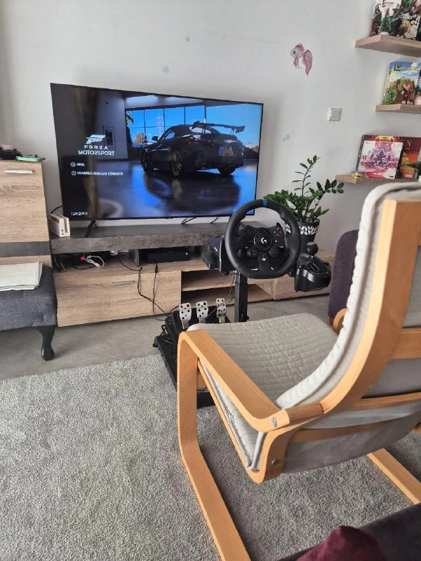 в комплекте руль, селектор передач, 3 педали и складная стойка.