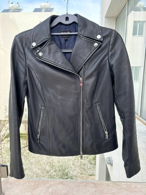 Кожаная куртка - косуха Massimo Dutti в темно-синем цвете. Размер xs. В отличном состоянии.
