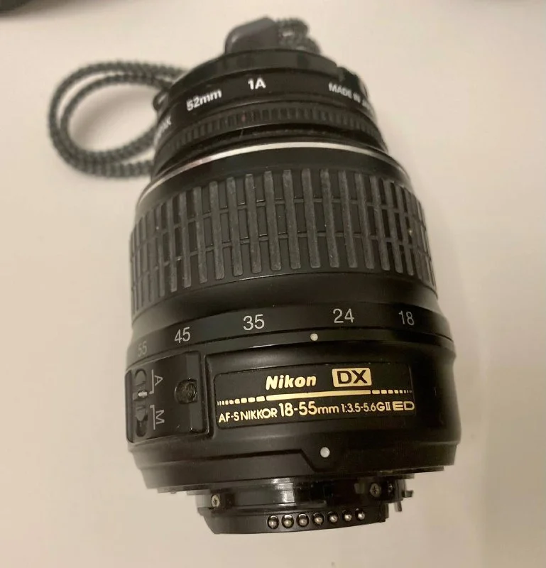 2. Объектив AF-S NIKKOR 18-55 мм f/3.5-5.6G ED DX – Универсальный объектив для портретов, пейзажей и повседневных фото. Легкий и удобный, с быстрой автофокусировкой.