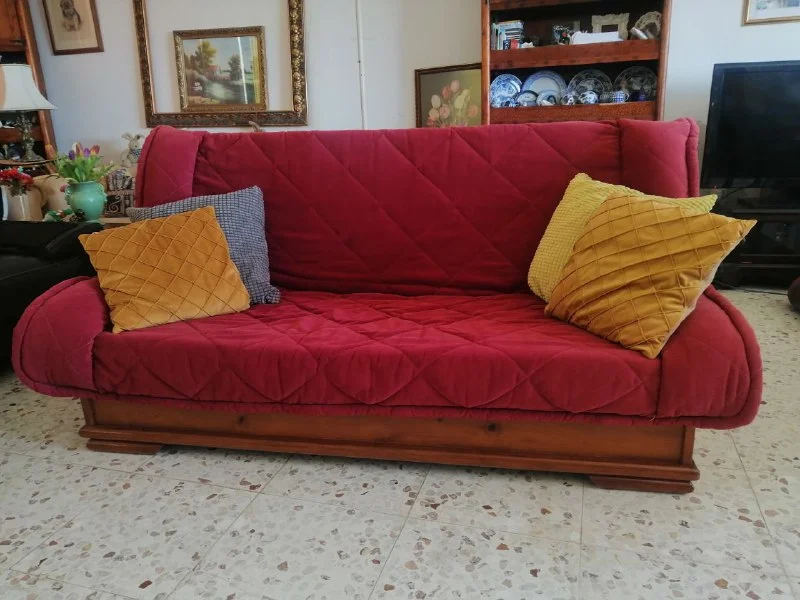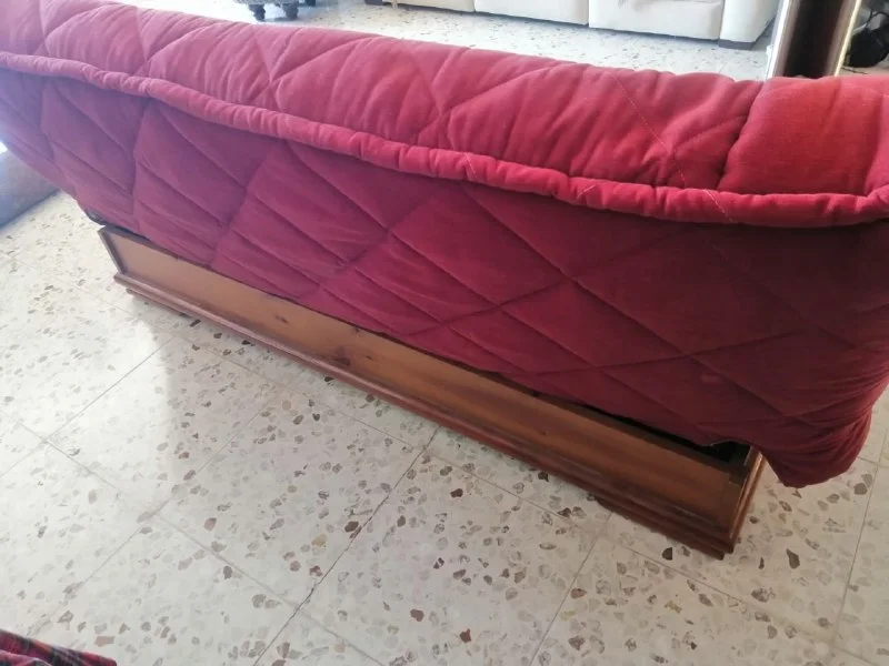 Отличный диван - раскладной "книжка", 190/90 с полностью съёмным чехлом, в отличном состоянии(чехол только после химчистки), крепкий, жесткий, цвет тёмный коралл, спальное место 130/185см, ящик для белья, €250, Пафос, возможна доставка по договорённости