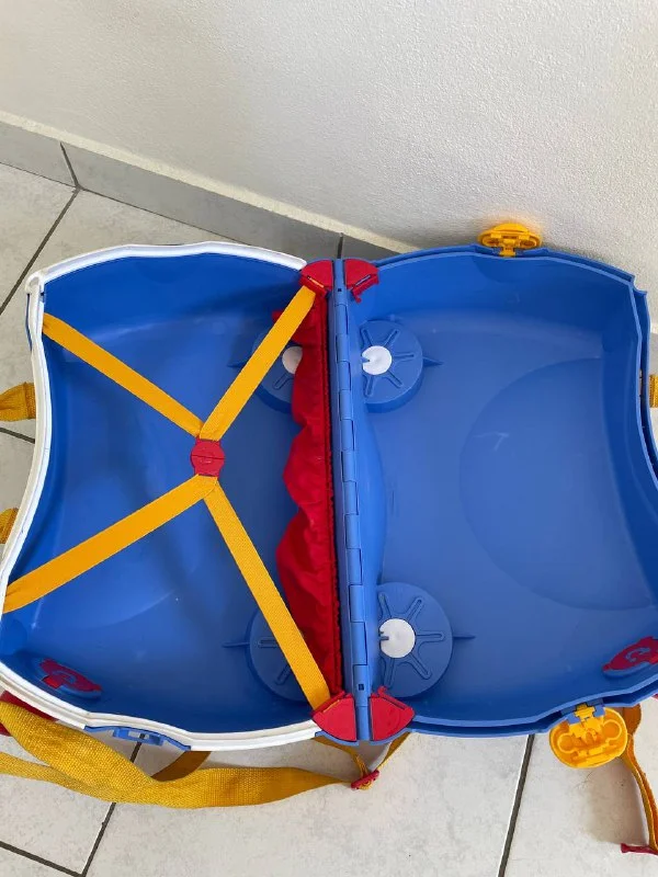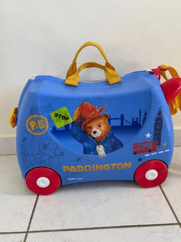 Детский чемодан trunki paddington. 18 литров, вес меньше 1 кг, подходит для ручной клади. Можно тянуть ребенка за собой, когда он сидит на чемодане, можно нести через плечо или в руке. Отличная альтернатива коляске для подросшего малыша. Ребенок сам весело ездит на чемодане, как на беговеле. Есть ключ, чтобы закрыть, все как у взрослых. Достаточно места и для игрушек, и для одежды ребенка. Вынянчил одного хозяина, ищет себе нового. 25€
