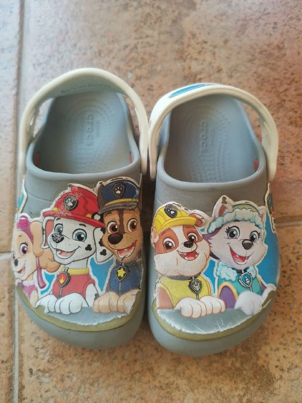 Три пары обуви за 20 евро: кроссовки, crocs щенячий патруль, сандалии. Размер 28