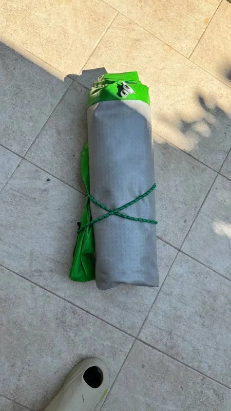 Размер: примерно 3х1 м. Прочный материал, отлично держит воздух. Подходит для гимнастики, йоги, игр. В комплекте мощный насос.