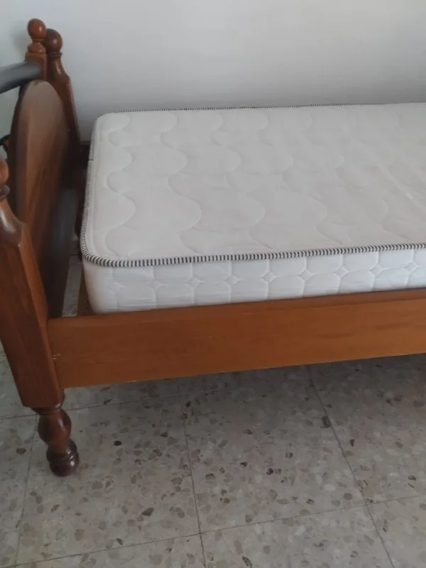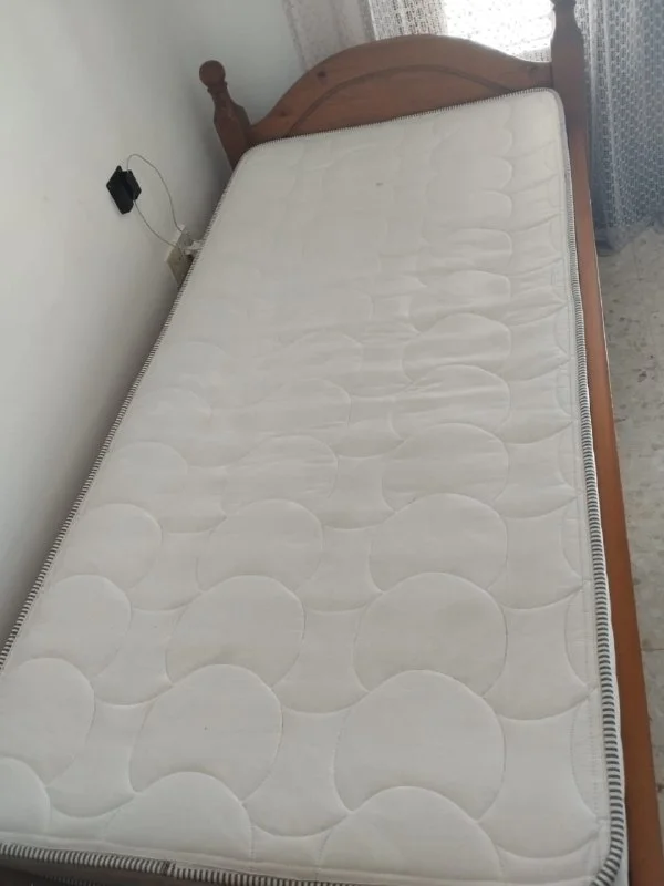 В комплект входит кроватный каркас + 2 прикроватные тумбочки, купленные в Suntower Plaza и оригинальный наматрасник.
