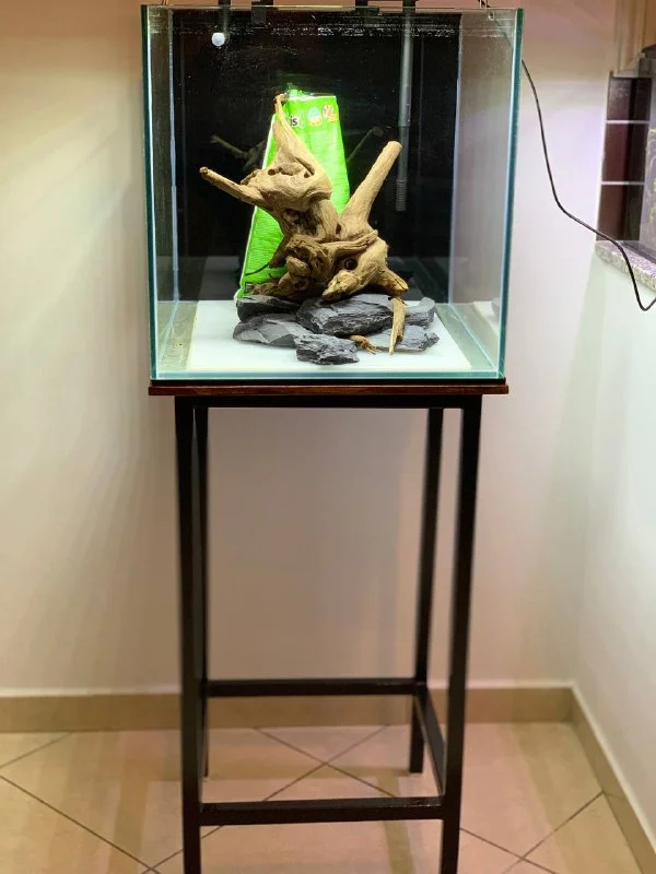 Продам аквариум куб 45х45х45 , стекло 8мм, 90 литров, черный фон , новый фильтр, led лампа, подставка высота 80 см, 10 кг черного песка, 2 кг питательного грунта, коряга с камнями, не запускался из за отсутствия времени, 400 евро, Тала Пафос.