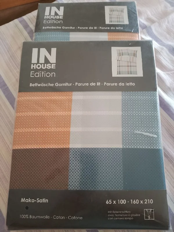 Два комплекта постельного белья, одинаковые, новые, в упаковке, без простыней, сатин - хлопок, 160/210 на молнии, €40 за оба, €20 - один, Пафос