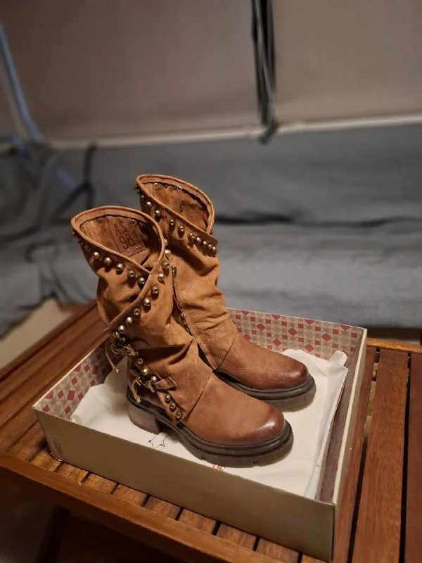 Сапоги итальянской фирмы AS98, ручной работы, в отличном состоянии (пара выходов из машины до ресторана), кожа высокого качества, выглядят круто, как и вся обувь этого бренда. Размер 39 (26 см по стельке, обычно такой размер маркируют как 40-й).