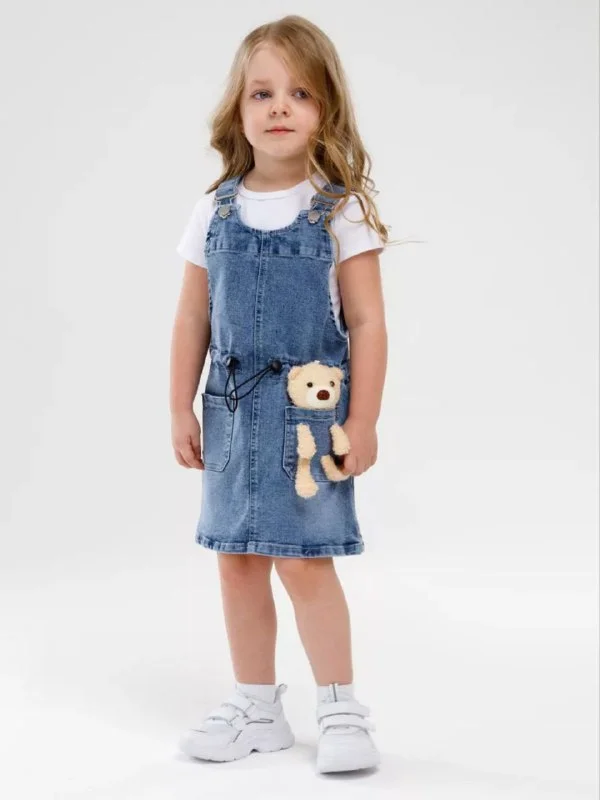 Джинсовый сарафан, размер 122, дочь носить не стала, 20€.