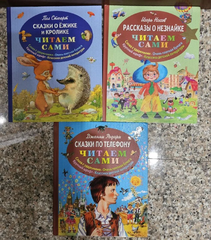 «Книги серии “Читаем сами”, отличное состояние, плотная бумага, крупный шрифт. Подойдут для обучения чтению.»
