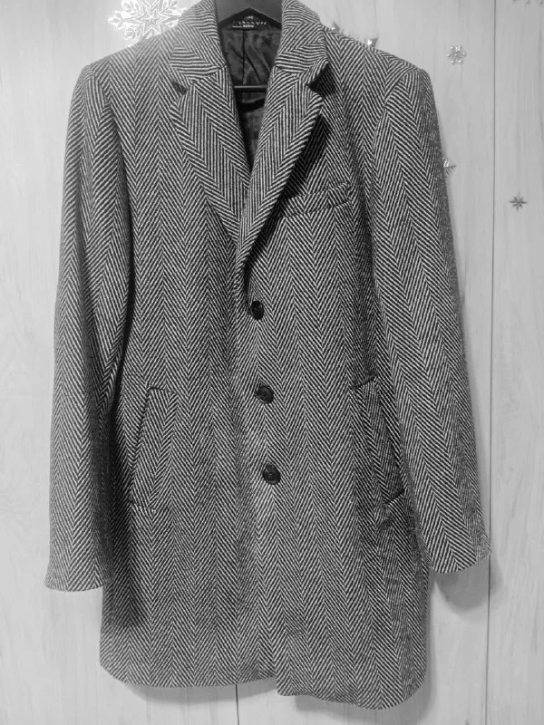 Классическое мужское пальто, рисунок "елочка". Состояние нового, одевали пару раз. Хороший состав-30% шерсть. Размер S/M.