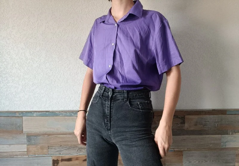 Фиолетовая (с градиентом) рубашка с коротким рукавом.