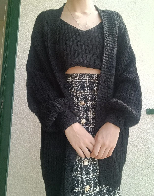 Комплект, чёрный вязаный кардиган и топик.