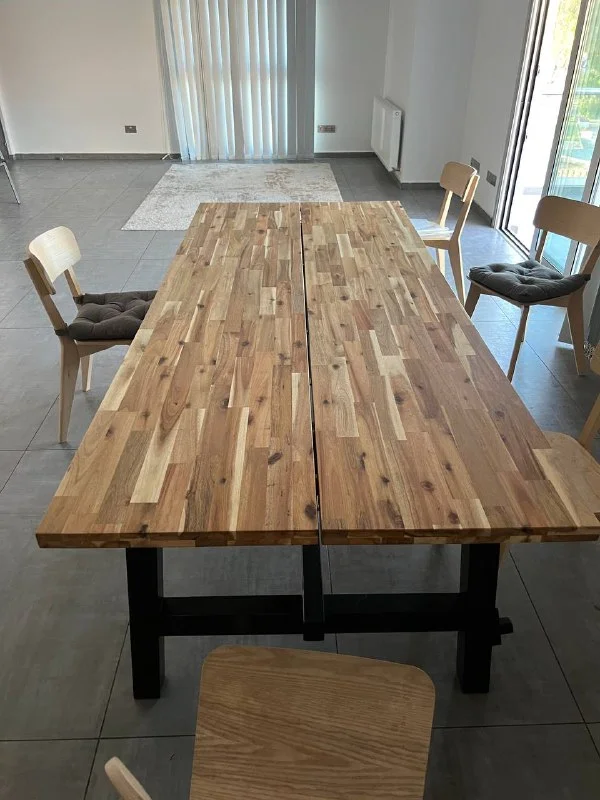 В связи с переездом продаётся обеденный стол 235см х 100см. Икеа, модель skogsta. 350€ (новый стоит 630€). И деревянные стулья ronninge. 5шт. 35€/шт (новые 99€) . Возможет торг.