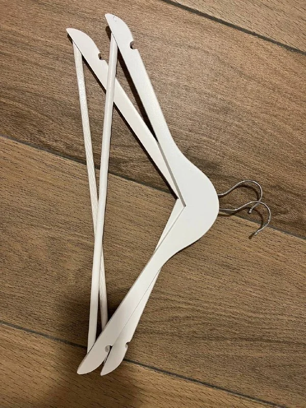 Более 100 вешалок для одежды, из них 90 деревянных, остальные пластиковые.