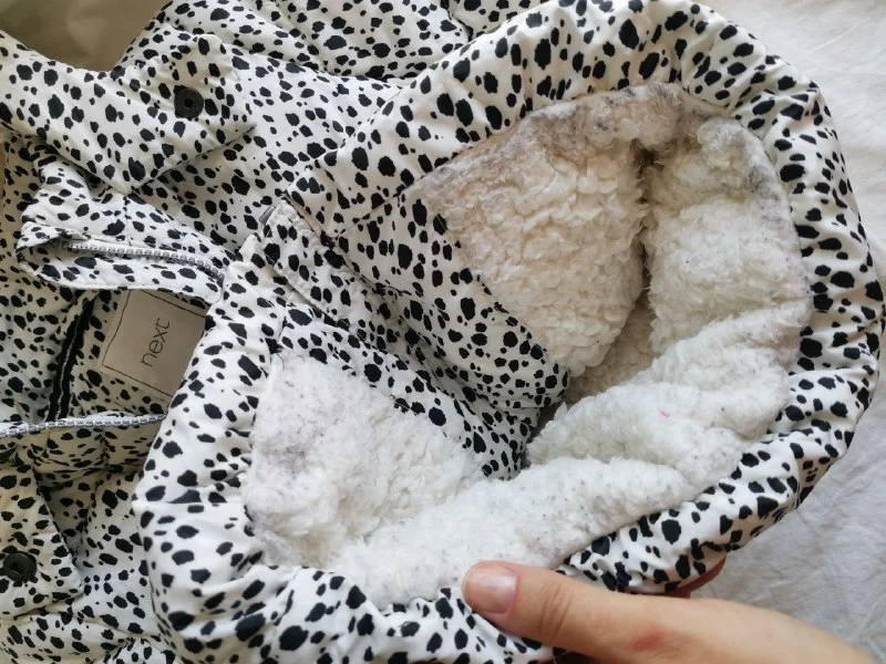 Теплая куртка Next, размер 92. Немного внутри окрасилась от джинсов, надо постирать.