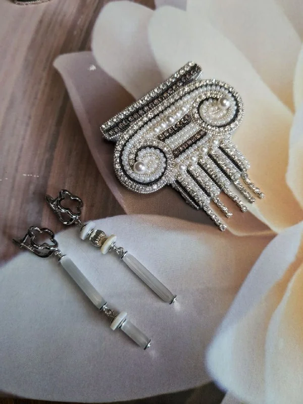 В наличии. Брошь Капитель в серебре 20€. Серьги Колонны белые 10€.