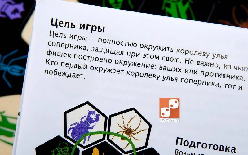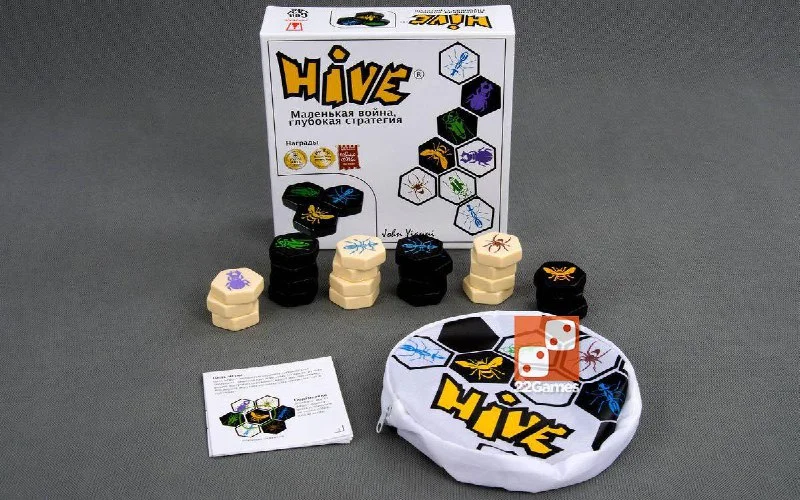 «Улей» — это локализация известной игры Hive, впервые выпущенной в 2001 году и быстро ставшей настоящим хитом. Правила игры достаточно просты — нужно выкладывать и перемещать шестиугольные фишки насекомых, стараясь захватить королеву улья соперника, окружив её своими фигурами.