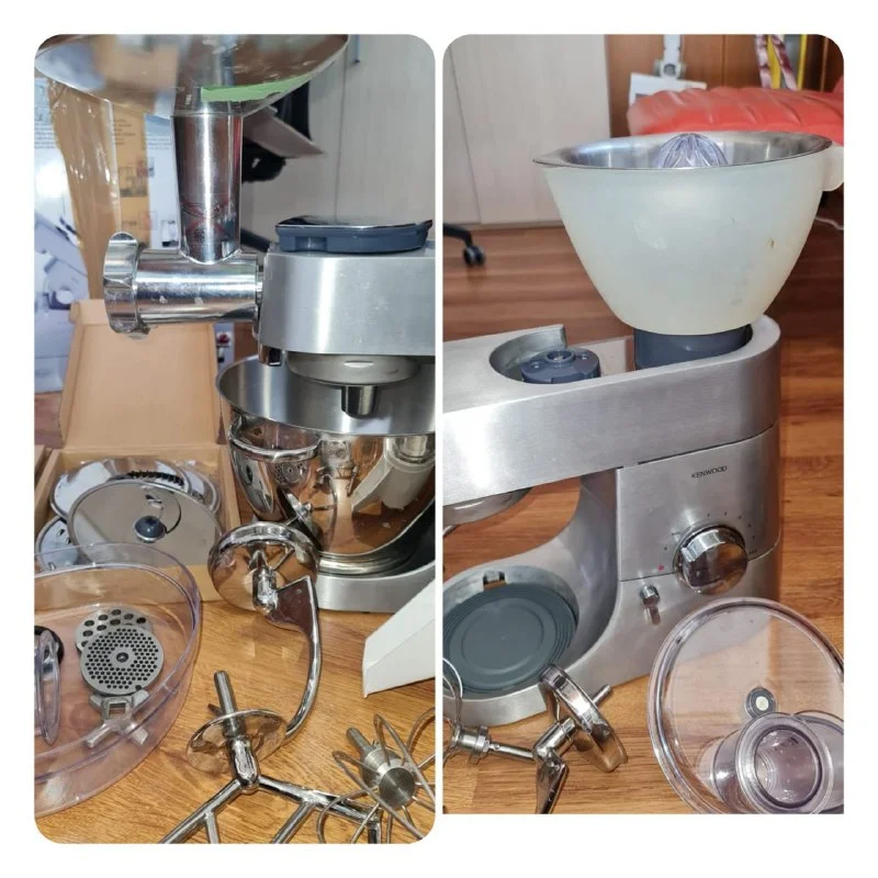 В связи с переездом продаётся профессиональный кухонный комбайн Kenwood Chef Titanium KM 013 со множеством насадок в комплекте. Отличное состояние. Практически не пользовались. Все рабочее.