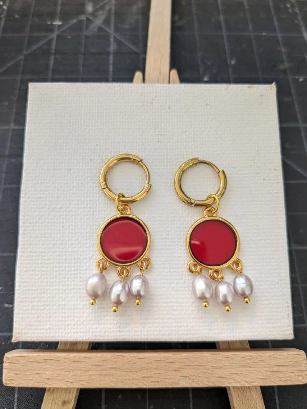 Серьги ручной сборки с эмалевыми окошками и натуральным жемчугом. Швензы-конго, но можно поставить другие. €13