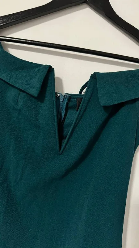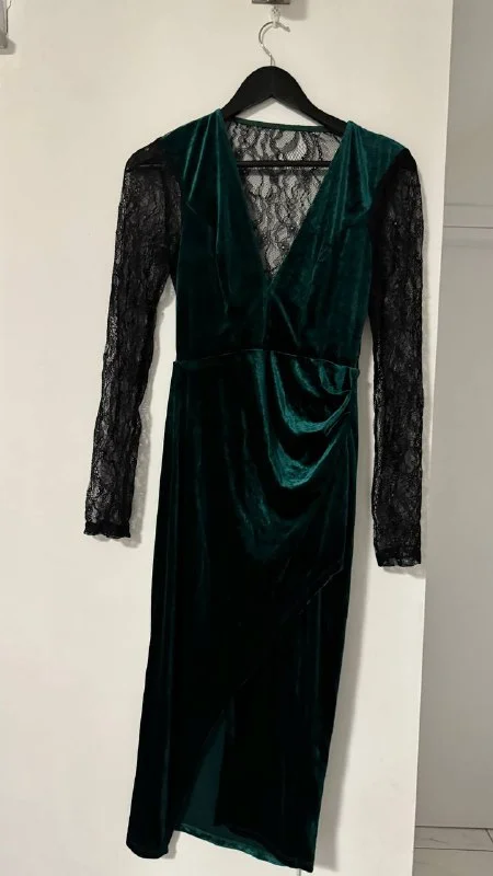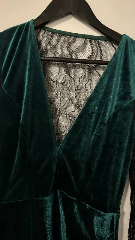 Платье изумрудного цвета с чёрным гипюром на спинке и руках