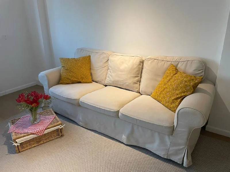 Диван IKEA + 2 комплекта чехлов (Бежевый и серый).