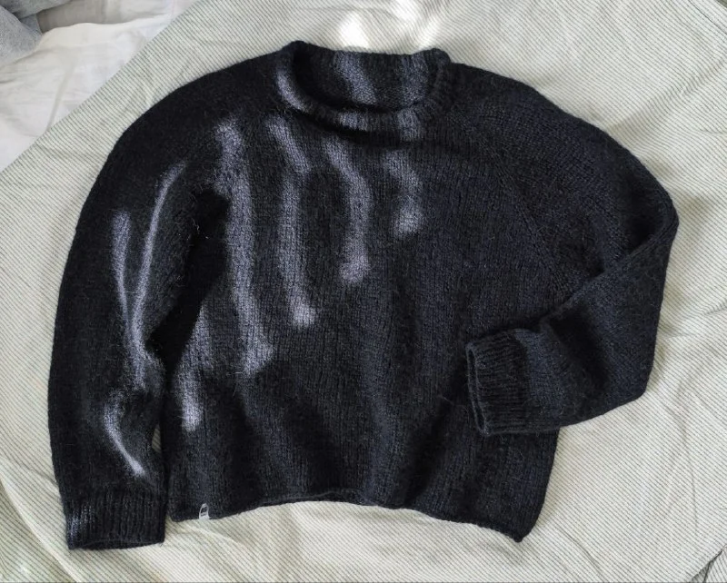 Лёгкий воздушный черный свитер ручной работы из вспушенной альпаки