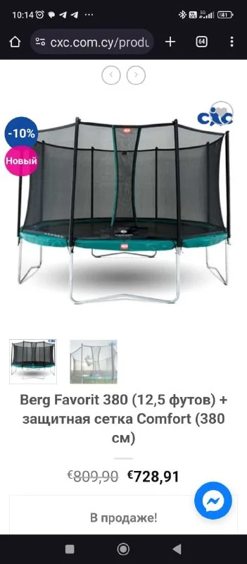Продаю батут, размер 3,8 , состояние нового.