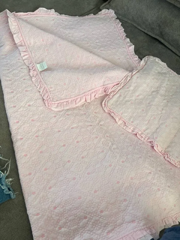 Покрывало и наволочка в детскую кроватку . Размер где то 1м на 110-120