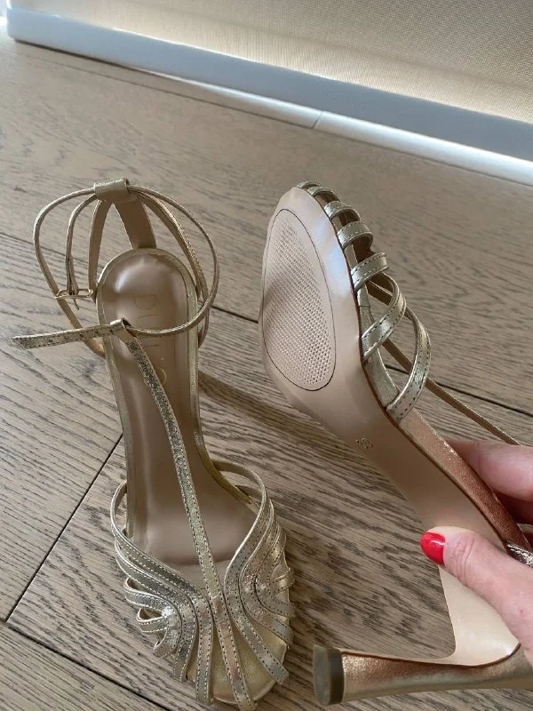 Совершенно новые босоножки. Тренд этого сезона. Золотой цвет. Универсально. Подо все. От летящего платья до белой рубашки с джинсами. Кожа. Италия. 39 размер. Я честно переоценила свои возможности. Не могу на каблуках вообще после беременности. Брала их в LLOYD за 145 евро. Отдам за 100. С коробкой. Никосия. Пересылаю.