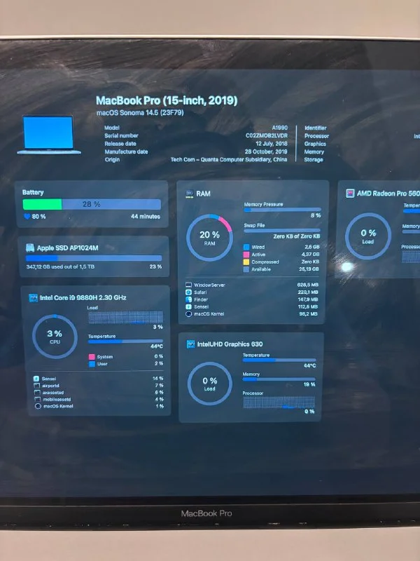 MacBook Pro 15” (Intel i9, 32GB RAM, 1TB SSD). Мощное устройство для работы с тяжелыми задачами и креативными проектами. Имеются видимые следы использования: царапины и вмятина на крышке, а также залипающая клавиша пробела. Емкость батареи составляет 79%. Несмотря на это, ноутбук остается отличным вариантом для тех, кому нужна высокая производительность по доступной цене. Подходит для видеомонтажа, графического дизайна и многозадачности!